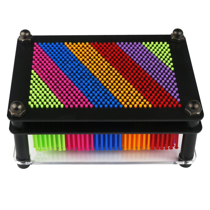 - Material: Made of multicolor plastic pins and a sturdy black plastic frame. Size 3.75 x 5 x 1.57 inches, Features a thick clear plastic front and pinscreen design. Suitable for one ages up!