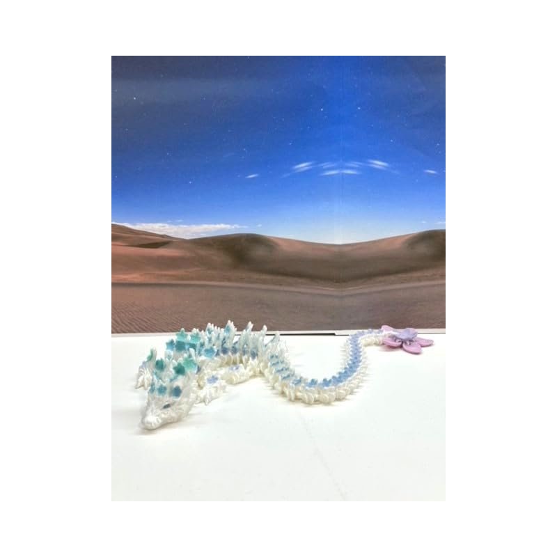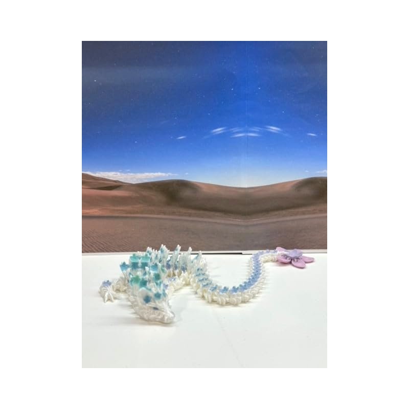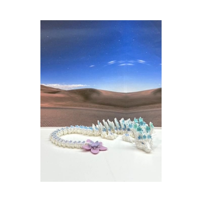3D Printed enchanting Articulated Cherry Blossom Dragon - a mystical creature that brings a touch of fantasy to your world. Unveil the mystery of this Macaroon Cherry Blossom Dragon ( measures 12" long) a captivating fusion of elegance and fantasy. This dragon reveals itself with a symphony of colors - a testament to its magical heritage. ------- Small Components Advisory: ------- Please note that this product may contain small components and might not be suitable for very young children. Given the characteristics of 3D printing, there is a potential for small components to detach if handled aggressively or dropped. Therefore, we advise against allowing younger children to interact with the dragon. Please consider that 3D printed objects might include minor imperfections such as layer lines. These are a natural and inherent aspect of the printing process. We strive to produce the highest quality items, and these imperfections contribute to the unique character of each piece. Recall the unique creation of each dragon, crafted exclusively for you. The color selections available are depicted in the provided photos. Please be aware that variations in color may occur due to discrepancies in filament production and the characteristics of the monitor or screen you are utilizing to view the listing. Additionally, the arrangement of prints using multi-colored filament rolls can influence color distribution. ------- Licensing Information: ------- Authorized Design: NOHo3D holds the official authorization for the production of this exquisite design created by CinderWing3D.