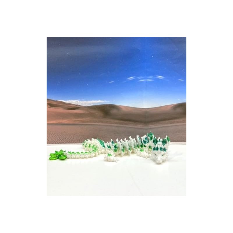 3D Printed enchanting Articulated Cherry Blossom Dragon - a mystical creature that brings a touch of fantasy to your world. Unveil the mystery of this White and yellow Green Cherry Blossom Dragon ( measures 12" long) a captivating fusion of elegance and fantasy. This dragon reveals itself with a symphony of colors - a testament to its magical heritage. ------- Small Components Advisory: ------- Please note that this product may contain small components and might not be suitable for very young children. Given the characteristics of 3D printing, there is a potential for small components to detach if handled aggressively or dropped. Therefore, we advise against allowing younger children to interact with the dragon. Please consider that 3D printed objects might include minor imperfections such as layer lines. These are a natural and inherent aspect of the printing process. We strive to produce the highest quality items, and these imperfections contribute to the unique character of each piece. Recall the unique creation of each dragon, crafted exclusively for you. The color selections available are depicted in the provided photos. Please be aware that variations in color may occur due to discrepancies in filament production and the characteristics of the monitor or screen you are utilizing to view the listing. Additionally, the arrangement of prints using multi-colored filament rolls can influence color distribution. ------- Licensing Information: ------- Authorized Design: NOHo3D holds the official authorization for the production of this exquisite design created by CinderWing3D.