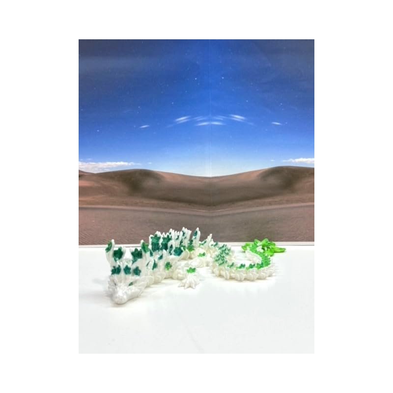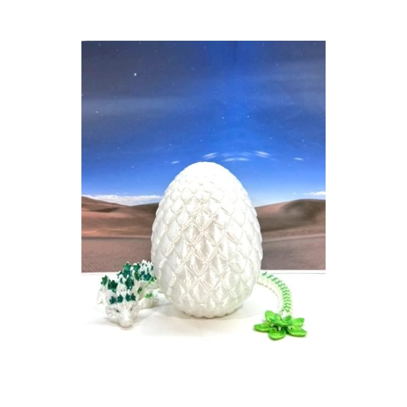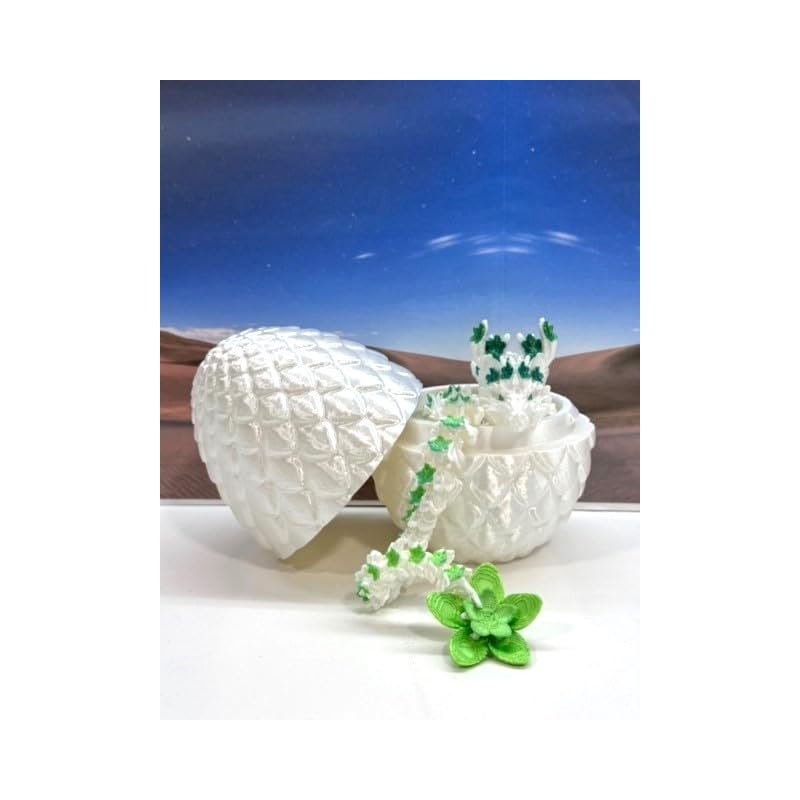 3D Printed enchanting Articulated Cherry Blossom Dragon - a mystical creature that brings a touch of fantasy to your world. Unveil the mystery of the Scaled silky White Dragon Egg and this White andYellow Green Cherry Blossom Dragon ( measures 12" long) a captivating fusion of elegance and fantasy. Encased within a meticulously designed crystal egg, this tiny dragon reveals itself with a symphony of colors - a testament to its magical heritage. ------- Small Components Advisory: ------- Please note that this product may contain small components and might not be suitable for very young children. Given the characteristics of 3D printing, there is a potential for small components to detach if handled aggressively or dropped. Therefore, we advise against allowing younger children to interact with the dragon. Please consider that 3D printed objects might include minor imperfections such as layer lines. These are a natural and inherent aspect of the printing process. We strive to produce the highest quality items, and these imperfections contribute to the unique character of each piece. Recall the unique creation of each dragon, crafted exclusively for you. The color selections available are depicted in the provided photos. Please be aware that variations in color may occur due to discrepancies in filament production and the characteristics of the monitor or screen you are utilizing to view the listing. Additionally, the arrangement of prints using multi-colored filament rolls can influence color distribution. ------- Licensing Information: ------- Authorized Design: NOHo3D holds the official authorization for the production of this exquisite design created by CinderWing3D.