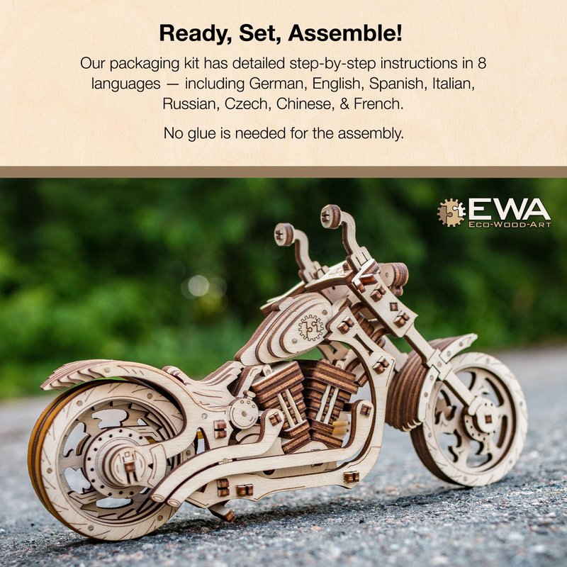 - Ready, Set, Assemble: Our 3D puzzle for adults and kids contains 152 pre-cut pieces, essential tools, and clear assembly instructions in 8 languages, including German. You'll have your cruiser motorcycle ready to roll in no time. No glue is required.