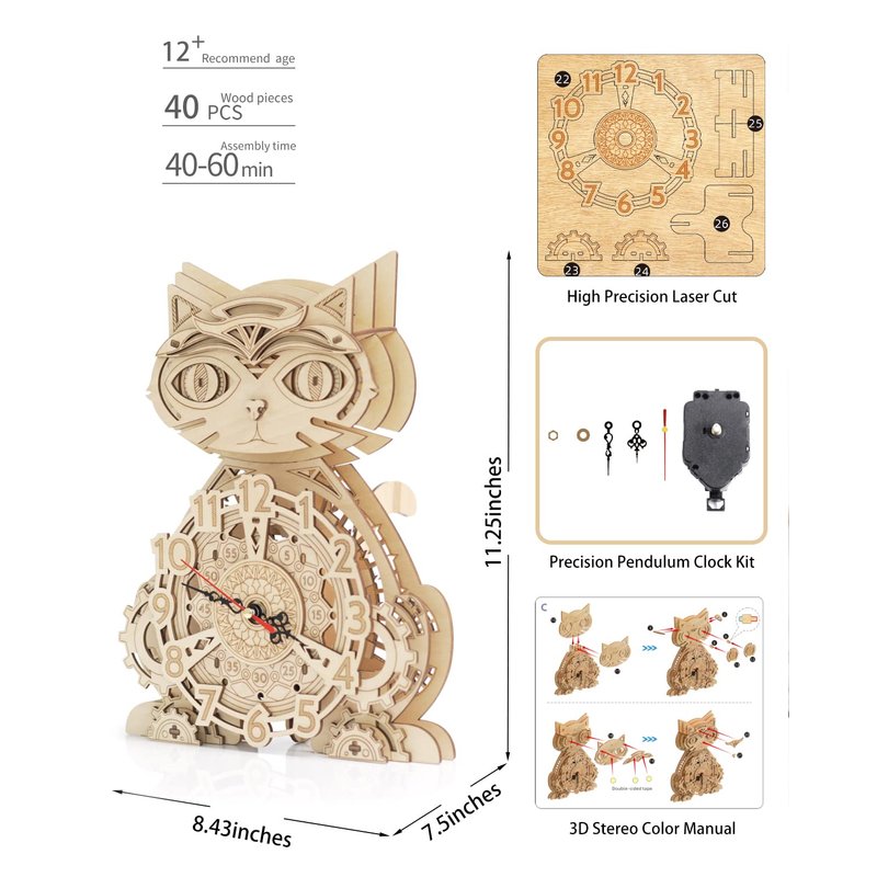 - 【Clock is Impressive Cift】: This cute cat desk clock is a timely and timeless gift. 3D puzzles for kids and adults are perfect gifts for any occasions, like Christmas, Father's Day, Mother's Day, birthday gifts, Kwanzaa, Hanukkah and so on.