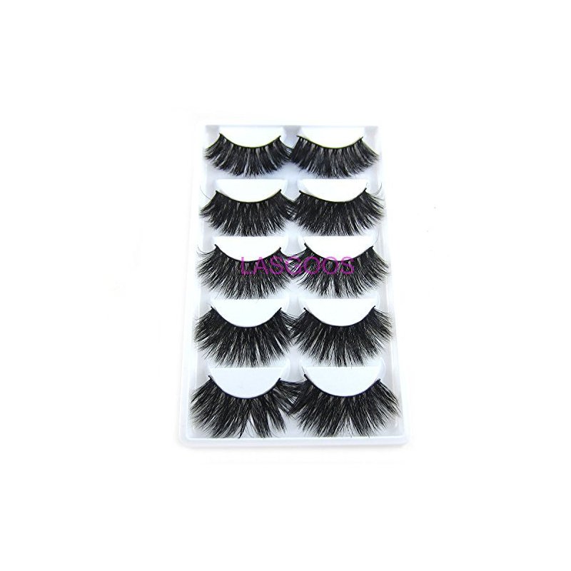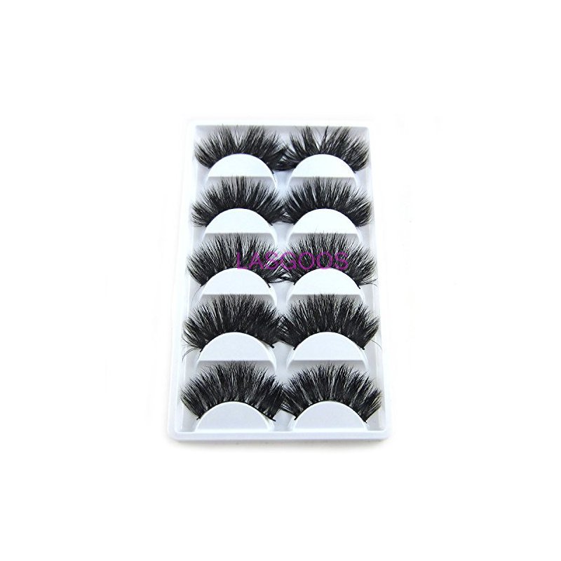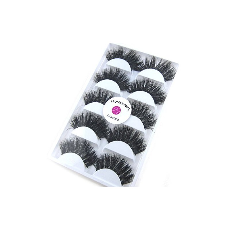 3D Real Mink False Eyelashes LASGOOS 100% Siberian Mink Fur Luxurious Soft Cross Thick Very Long Wedding Party 5 Pairs 20mm Fake Eye Lashes K02 (1 Pack-5 Pairs)