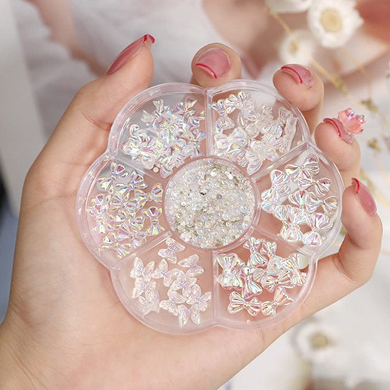 - 【Package Included】1 box Butterfly Nail Charms have 6 different shapes and 1 kind of pearl decoration.Enough quantities to meet your nails daily design needs, make your nail to be charming.