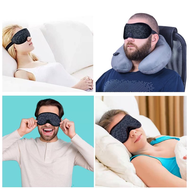 3D Sleep Mask, Contoured Cup Night Blindfold, Comfortable & Super Soft Sleep Eye Mask with Adjustable Straps for Women, Men, Sleeping Travel Yoga Naps (Leopard Print)