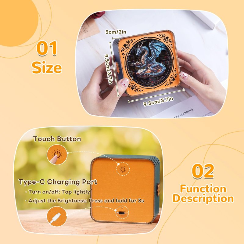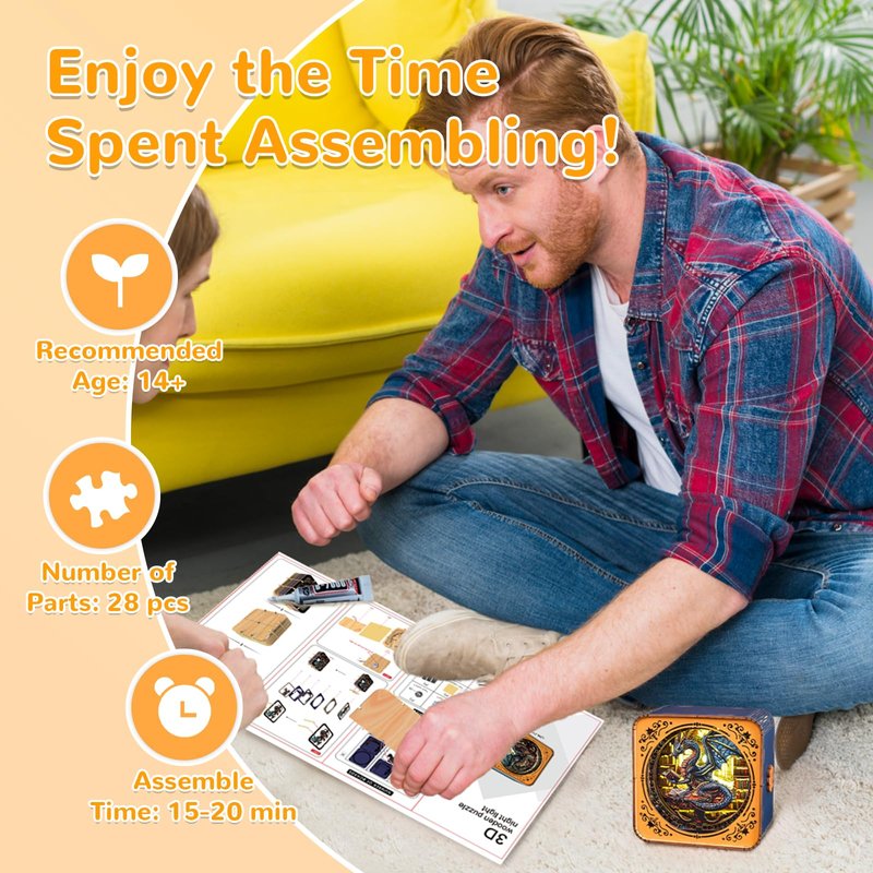 Wudhank 3D wooden puzzles night light are made from high quality wood, showcasing fine craftsmanship and unique designs. Each piece of the puzzle is carefully carved to ensure a perfect fit and presents vibrant colors and rich details for a delightful visual treat. Wooden puzzles for adult are not only great for challenging your intelligence and patience, but also a decorative piece full of artistry. This 3D night light is both a 3D wooden puzzle and a night light, both entertaining and practical. It can be used as a decorative item after putting it together, and the yellow light is perfect for applying on the bedside as a night light and companion light, healthy and eye-friendly.Whether for personal leisure or family entertainment, this wooden jigsaw puzzle provides you with a unique puzzle experience that inspires creativity and thinking.