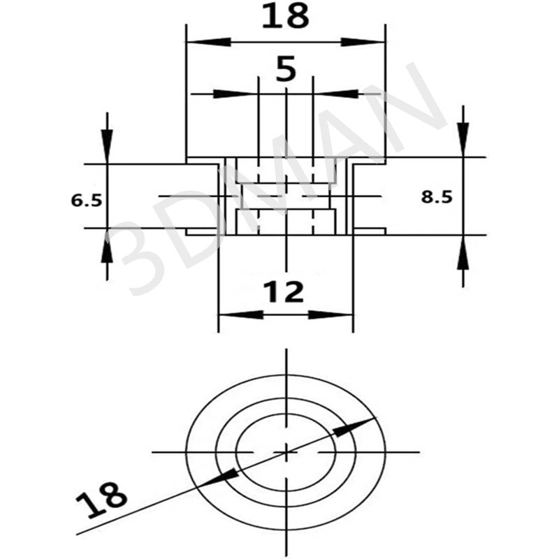 3Dman GT2 20 Toothless Bore 5mm Aluminum Timing Belt Idler Pulley for 6mm Width 3D Printers (10pcs)