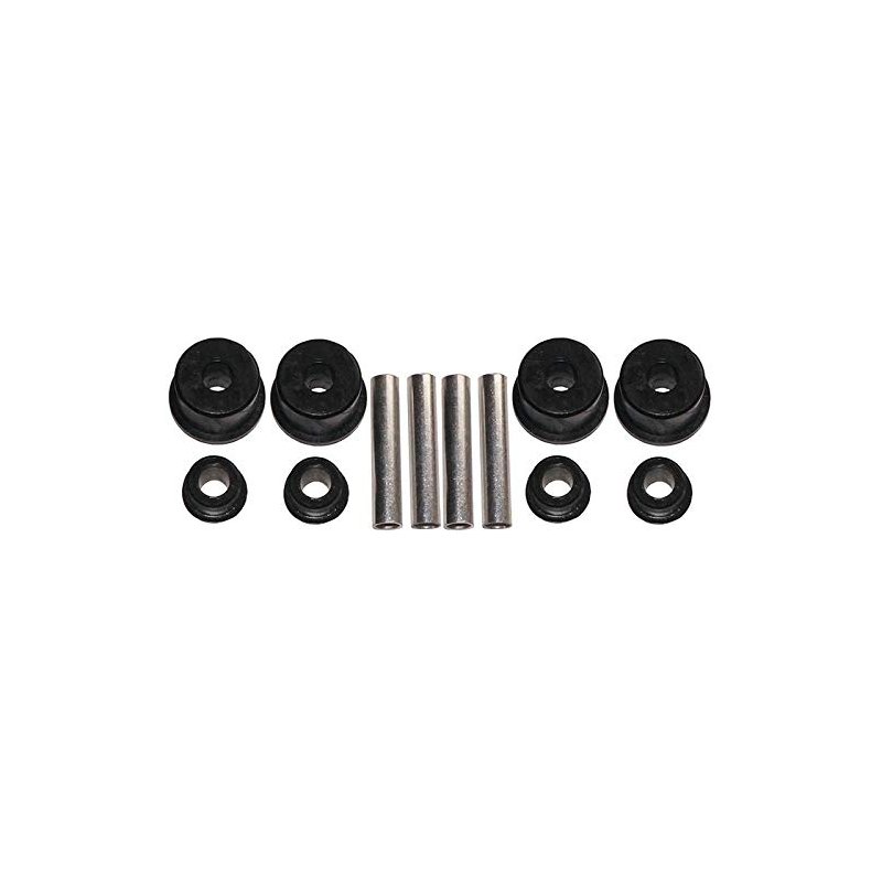 - Rear Leaf Spring Bushing Set includes 2 kits, (4) spacers and (8) rubber bushings