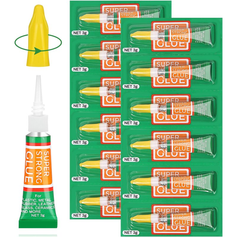 - ✅Convenient Packaging✅ The super glue (cyanoacrylate glue) set comes with 12 small tubes, which is more convenient than a large bottle since they can clog with multiple uses. It comes in individual tear-off cardboard packs, which makes it incredibly convenient to issue out to people in a specific area or for personal use, and the individual packaging ensures that the glue remains fresh and easy to access whenever needed.