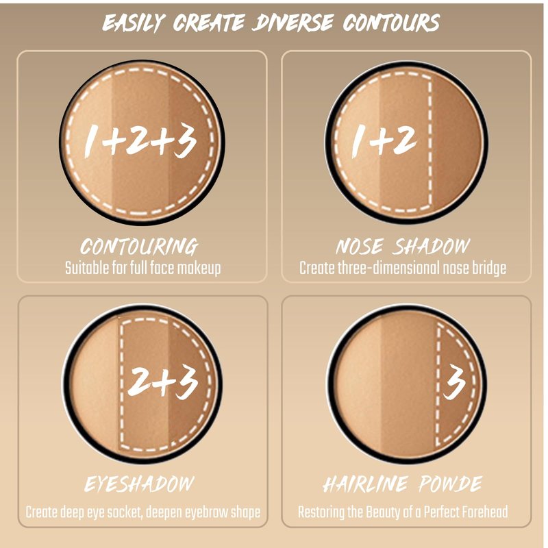 - MULTI-USES CONTOUR PALETTE The all-in-one contour makeup can be used as eyeshadow, eyebrows, collarbone, vest line, body, and hairline contouring to create natural-looking shadows.