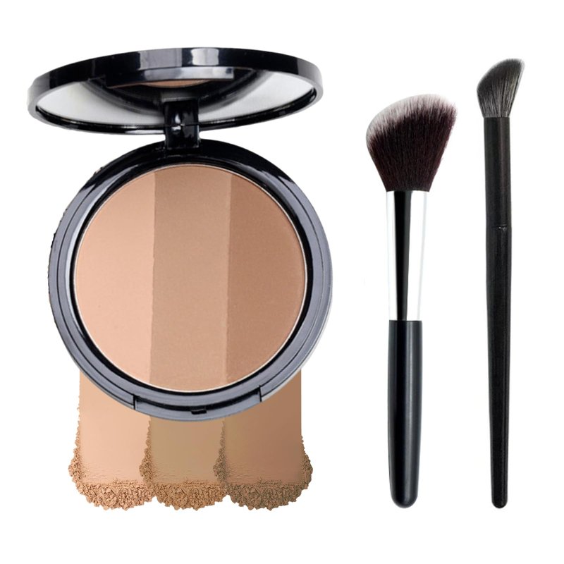 - 3 SHADES MATTE CONTOUR Available in 3 shades from light to dark to suit preference and placement area. Includes beige, sandy brown (nose shadow), gray brown shadow (contouring).
