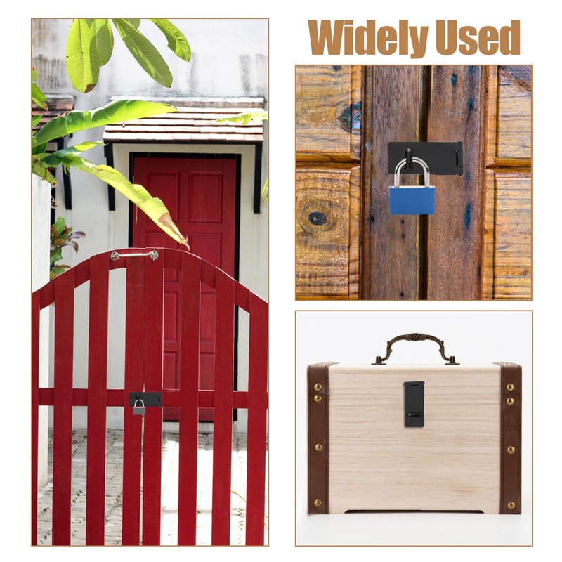 - Versatile Application: With its universal design, this 3 inch lock hasp is suitable for a wide range of uses. Whether it's securing doors, chests, cabinets, wooden wickets, windows, fences, kennels, or even bathroom and bedroom fixtures, our padlock latch offers reliable protection in any setting.