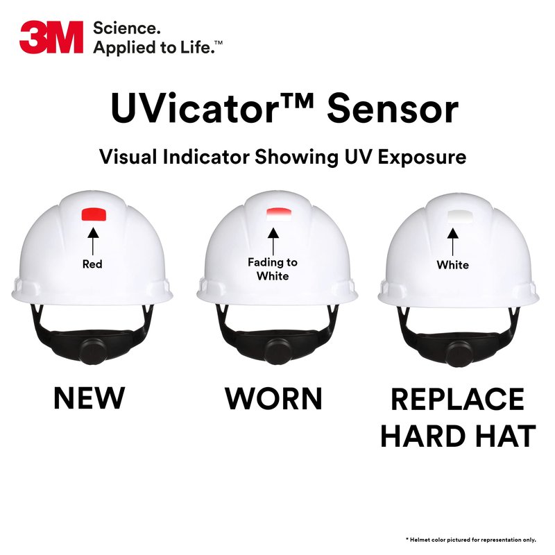- 3M UVICATOR SENSOR: A visual cue when it's time to replace the hard hat due to UV exposure