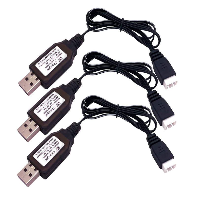3Packs 7.4V 2S LiPo Battery USB Charger Cable 1A Fast Charging with XH-3P Connector for RC Car Truck Rock Crawler FPV Drone Airplane Boat Racing Quadcopter Helicopter Airsoft SCX24