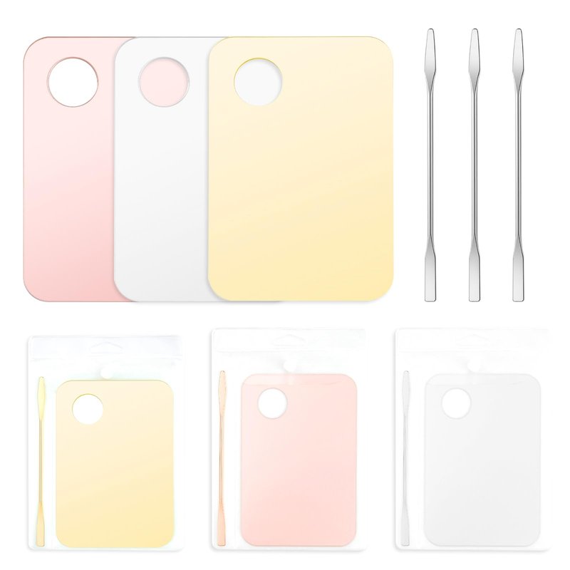 - Package include: The box includes one each of the pink, gold, clear acrylic palettes and 3 pieces Spatulas. Well packaged will not cause damage to the item, but also a perfect gift for friends and family.