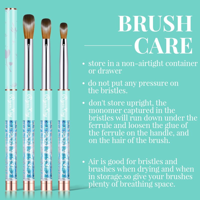 - 🌸 Care & Tips: Proper use, together with correct care and cleaning will ensure your brushes have longer life. Storage is important - always keep aired and whenever possible, in the upright position.