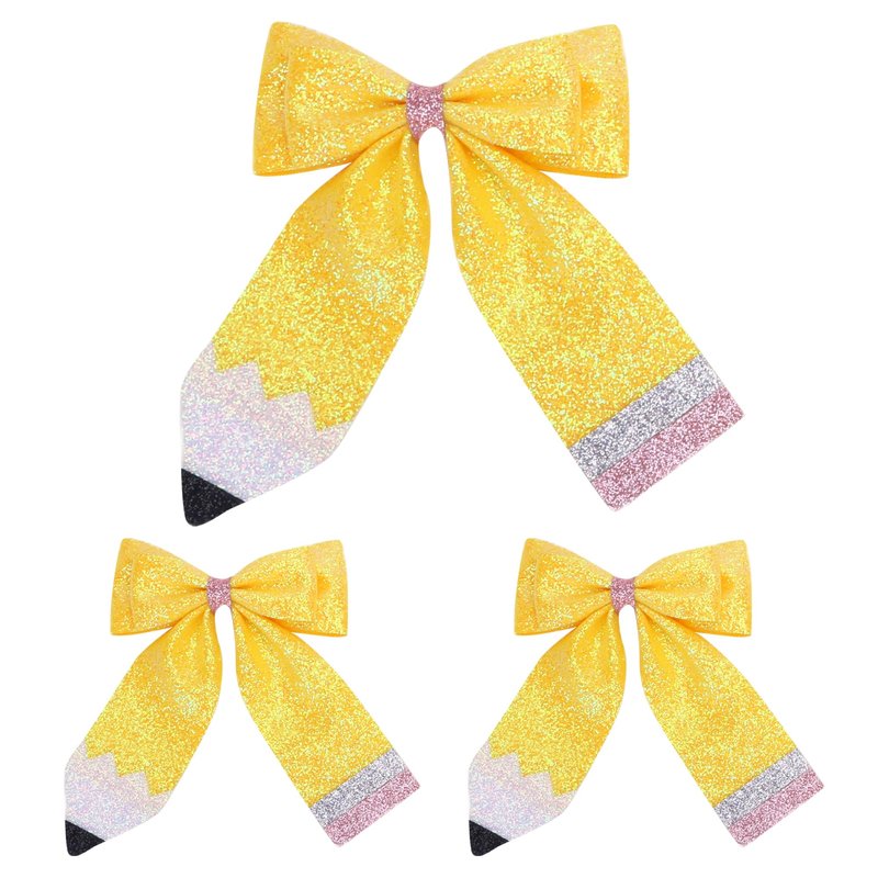 📚✏️IKOLA Back-to-School Hair Bows, 3PCS Glitter Pencil Hair Clip Set for Girls Teachers