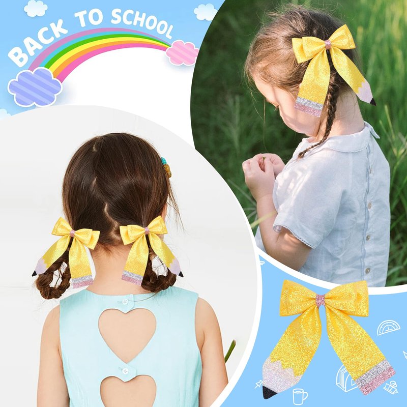 - ✏️ Multi-Purpose Use: Whether it's for back-to-school, graduation, Teacher's Day, or everyday wear, this set of pencil hair bow is the perfect choice. Not only suitable for school girls, but also an ideal hair accessory for teachers and parents on the first day of school.