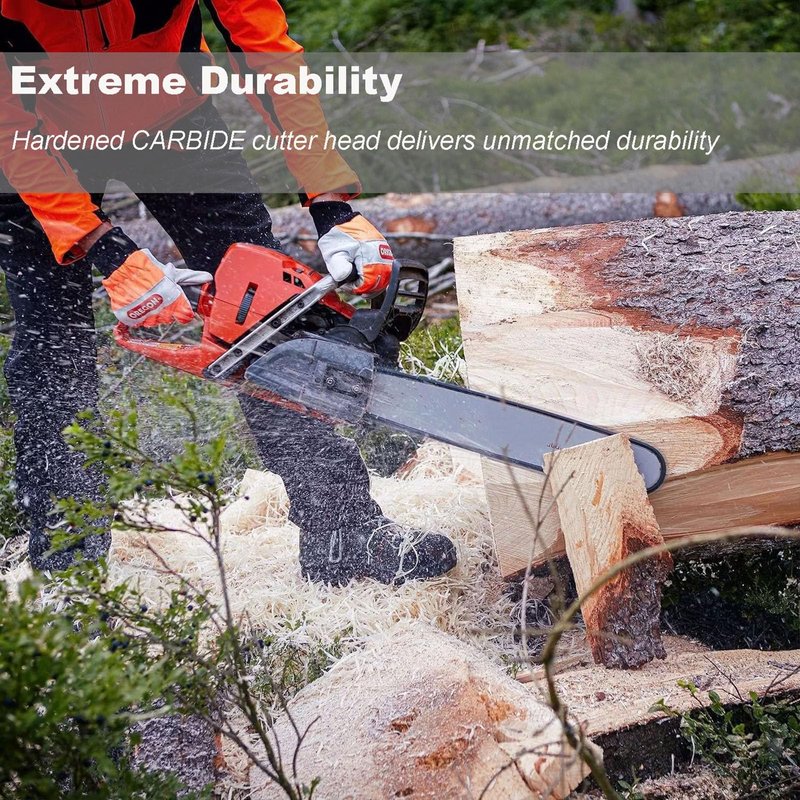 - Extreme Durability: Hardened CARBIDE cutter head delivers unmatched durability, lasting 10X longer than ordinary chainsaw chains – eliminating frequent replacements. Corrosion-resistant construction withstands harsh conditions: muddy tree roots, frozen timber, rubber, lightweight bricks, sap-heavy wood, and other sticky/damp materials.
