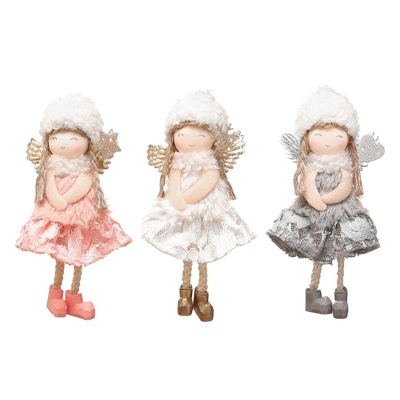 - Whole Set: 3pcs/set, White, Pink and Grey Skirts Christmas Tree Hanging Angel Winged Fairy Doll Decoration