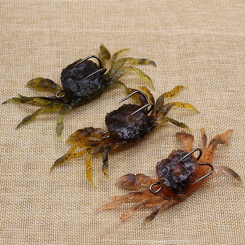 3Pcs Crab Bait 3D Simulation Crab Soft Lures with Sharp Hooks Double Hooks for Sea Fishing Crab Bait Traps, Saltwater Fish Tackle Accessory Tool(Style3)