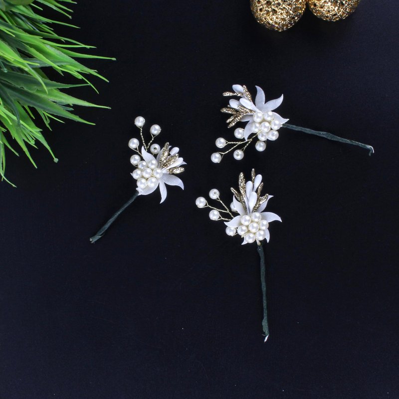 Timeless Elegance: Embrace the charm of timeless elegance with these beautiful white bridal hair pins, designed for the modern bride seeking a classic yet trendy touch.