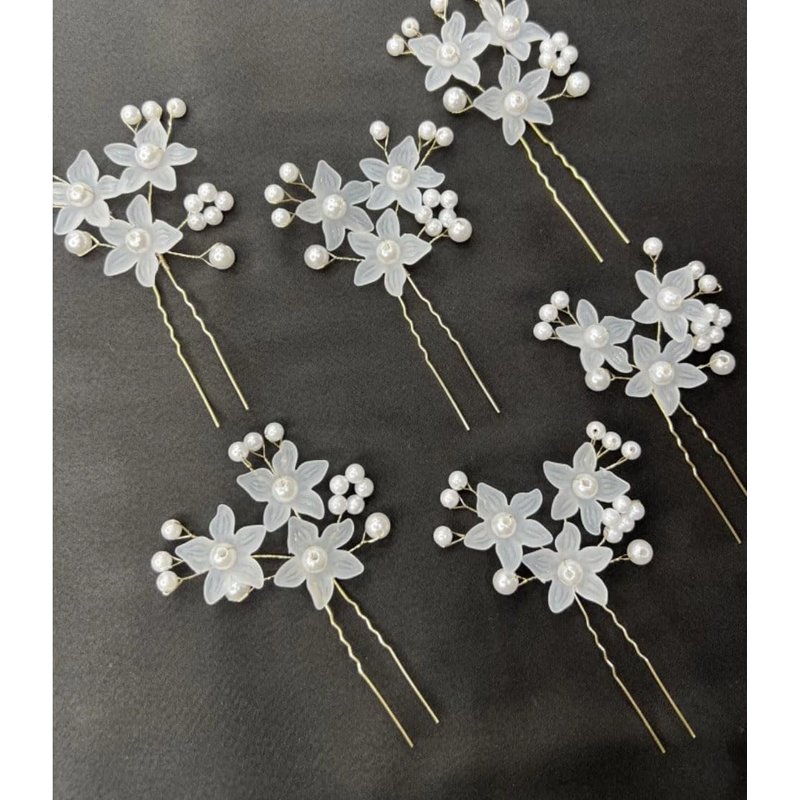 Timeless Elegance: Embrace the charm of timeless elegance with these beautiful white bridal hair pins, designed for the modern bride seeking a classic yet trendy touch.