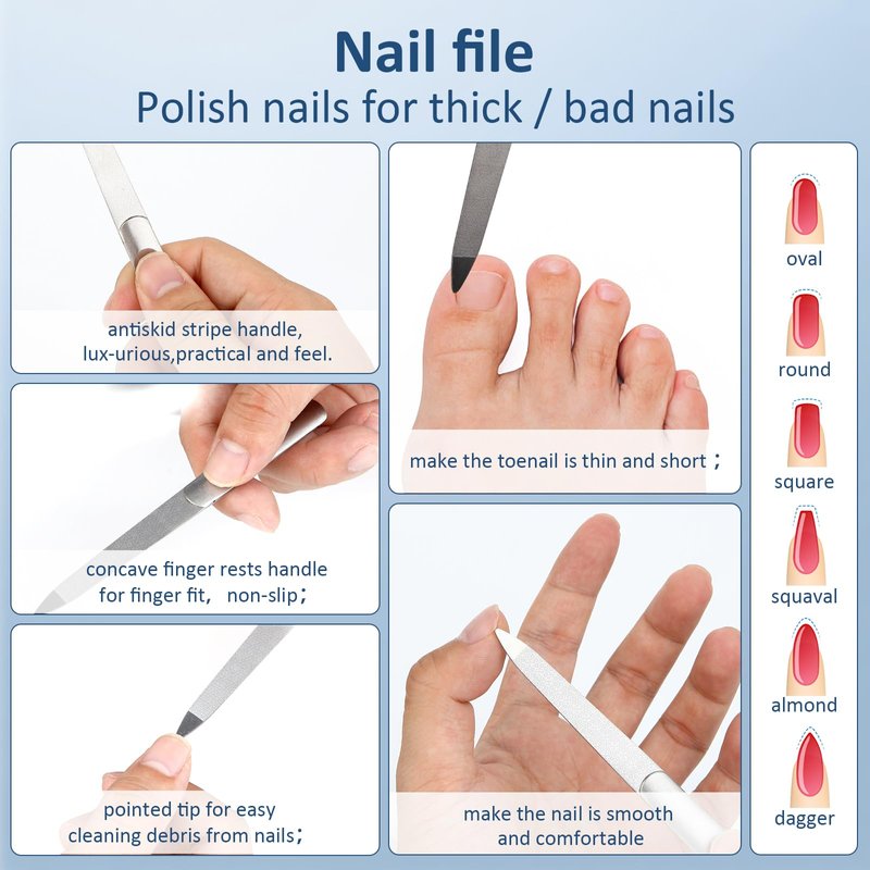 • 💞【TWO IN ONE CUTICLE PUSHER】Ergonomic rounded handles with texture for a positive grip, a non-slip handle for easy control;can be used to remove dirt from the inside of the nails, scrape off the nail polish and gel polish left on the nails and push away dead skin around the nails. This is a fully functional nail care tools, Complete care that covers your hands and foot.