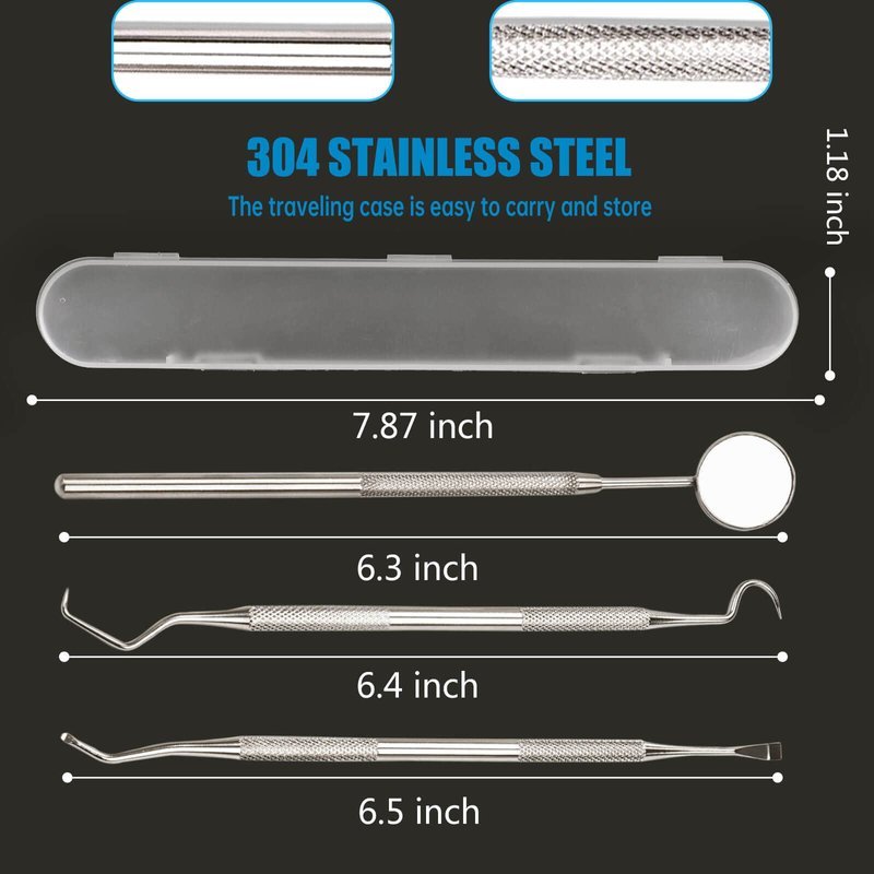 - ✅【HIGH QUALITY MATERIAL】 Our dental tools are made of 100% surgical grade 304 stainless steel which are very sturdy & durable & rust-proof and completely safe.