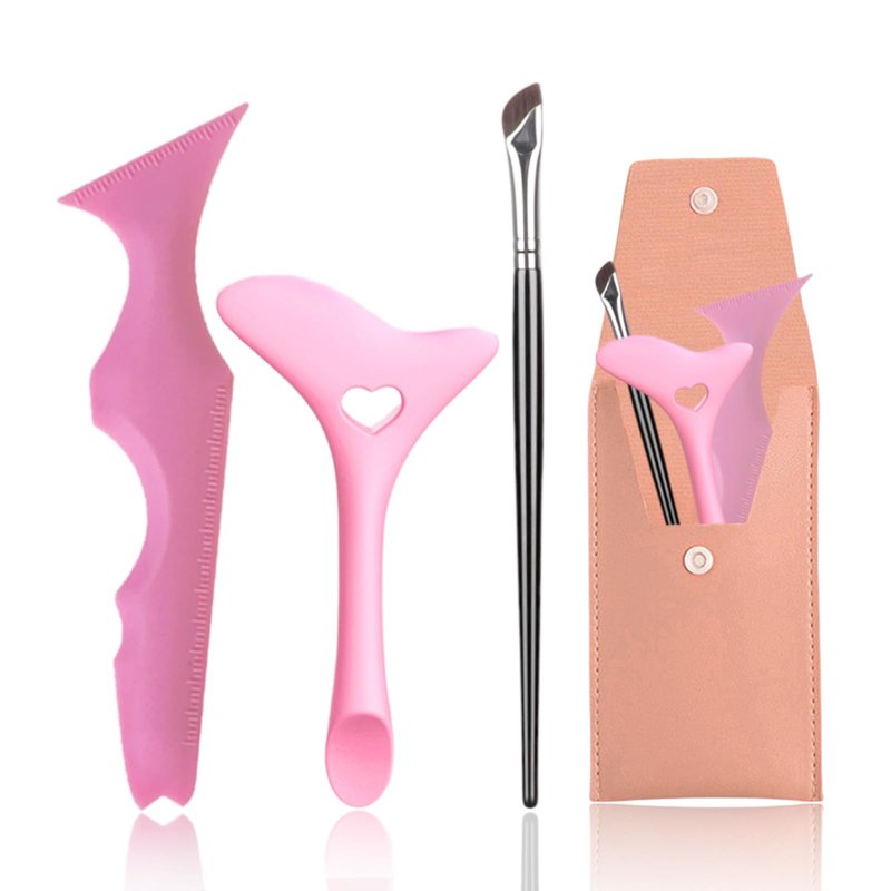 3Pcs Eyeliner Stencil Reusable Silicone Eyeliner & Scythe Eyeliner Brush Auxiliary Mascara Shield Multipurpose Eye Makeup Tool Eyeshadow Applicator for Winged Eyeliner, Eyelashes, Lip Liner (Pink)