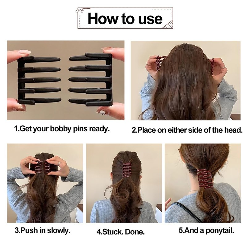 - [Using Tips]: Just place one side of the comb on the left hair and the other side of the comb on the right hair, then move the two combs and hair towards the center and fix them in place. Double comb design make them not easy to slip off, you can grab different amounts of hair according to the hairstyle you want.