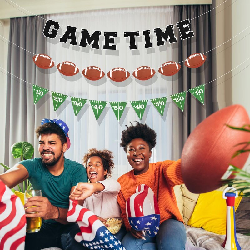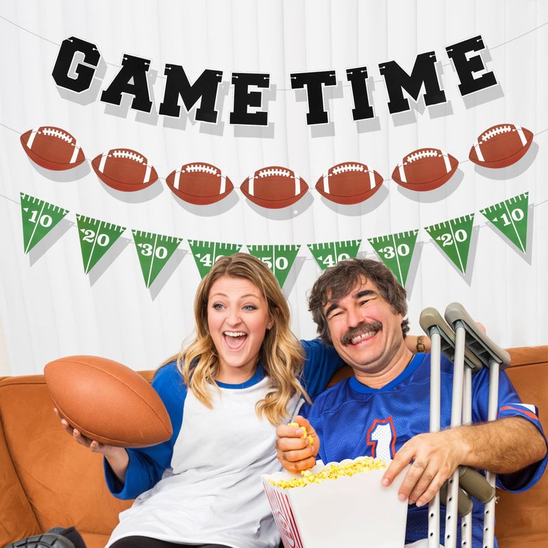 3pcs Game Time Football Banner, Football Birthday Party Decorations Football Theme Garland Sports Fantasy Football Party Decor Football Party Supplies for Party