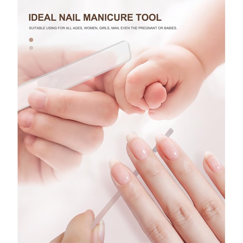 - This glass nail files and buffers set features a sealed keratin layer, offering a non-irritating, gentle filing sensation. It allows for precise nail shaping without causing harm to the fingertips, providing a comfortable touch and leaving the nails smooth with no jagged edges.