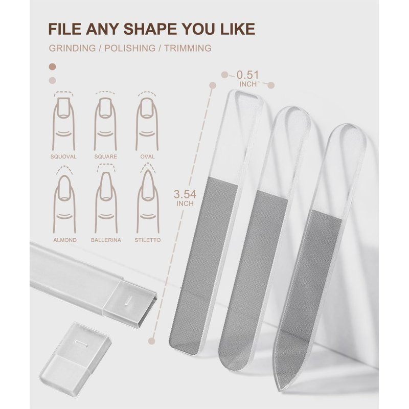 - Nail File With Case: glass nail file lightweight compact and convenient, every file comes with a hardcase, perfect for protecting your nail file in your purse, manicure kit, or even while travelling!