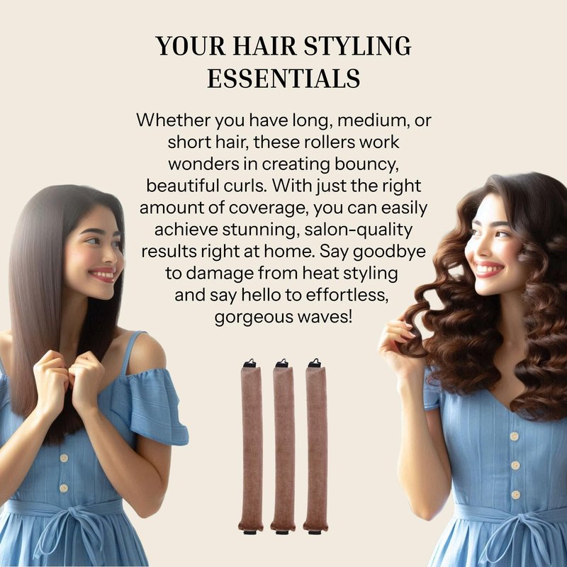 Achieve beautiful, bouncy curls without heat damage using our 3PCS Heatless Hair Curlers. These soft hair rollers are designed for comfortable overnight use, allowing you to wake up with stunning curls every morning. Perfect for all hair types, these rods offer a natural, heat-free solution to styling, providing long-lasting volume and waves without the need for a blow dryer or curling iron. Key Features: Heatless Styling: Get salon-quality curls without the use of heat, minimizing hair damage and keeping your locks healthy and shiny. Soft & Comfortable: Made from soft, flexible foam, these rollers are designed for all-night wear, ensuring a restful sleep while they shape your hair. Easy to Use: Simply wrap sections of damp or dry hair around the rods, secure them, and let them work their magic overnight for beautiful curls by morning. Versatile for All Hair Types: Suitable for straight, wavy, or curly hair, allowing you to create a variety of styles, from loose waves to tighter curls. Reusable & Travel-Friendly: Durable and lightweight, these curlers can be reused multiple times and are easy to pack, making them a perfect travel companion for on-the-go styling. Effortlessly style your hair while you sleep with these heatless hair curlers, and wake up to a gorgeous, voluminous blowout!