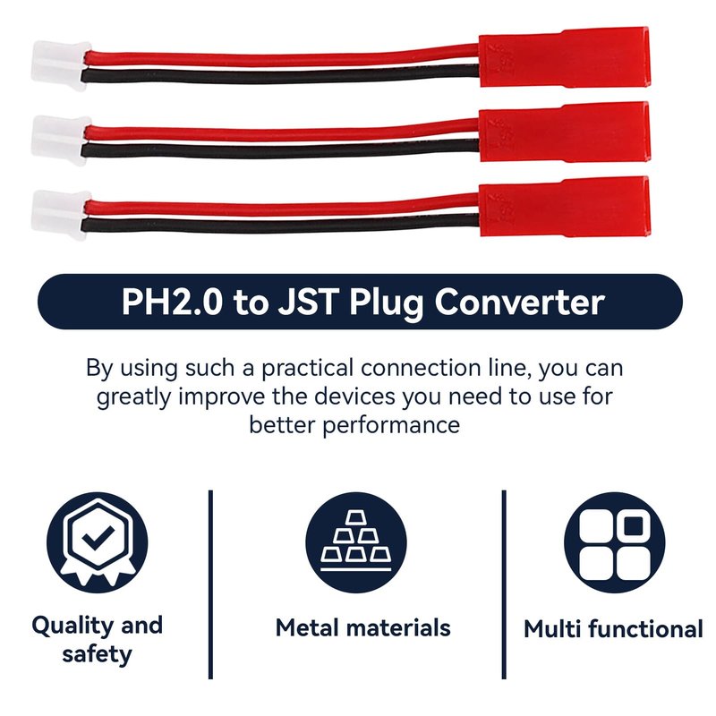 - [Safe and Reliable]: RC model car PH2.0 plug to JST battery plug cable is safe and reliable, is the best choice for your remote control car.