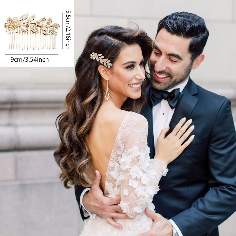3PCS Leaf Hair Side Combs, Gold Rhinestone Hair Comb, Hair Side Comb Clips, Hair Accessories for Women, Girls, Bride, Bridesmaid
