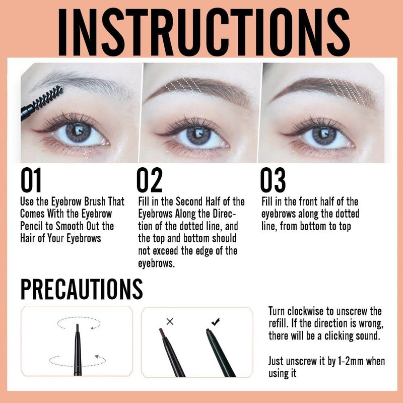 - ULTRA FINE BROW PENCIL:The ultra-fine automatic eyebrow pencil does not need to be sharpened,and the built-in spiral brush,can draw fine eyebrows and fill in sparse areas and gaps to easily create the appearance of natural eyebrows