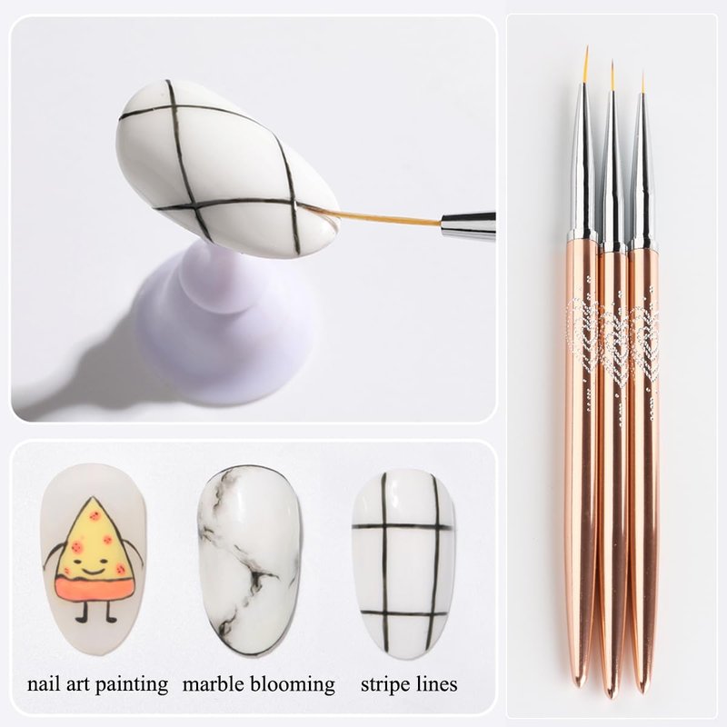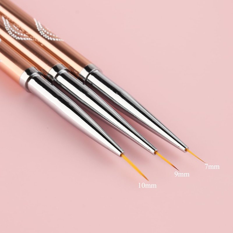 - 【You will get】 Includes 3Pcs Nail Liner Brushes. Sizes for Nail brushes hair: 7/9/10mm. The nail art brushes is well cover by pen cap,which can protect the brush hair from splitting.