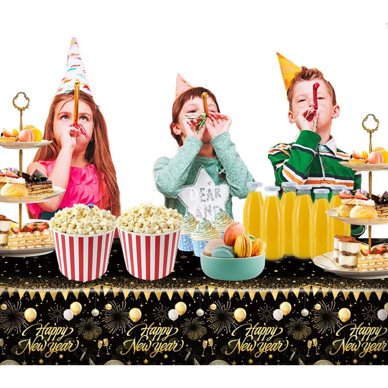 - Durable Material: Made of quality plastic,all our happy new year table covers are highly opaque and provide full coverage for your tables. No fading, no shrinkage, heavy duty, waterproof, portable,easy to clean.