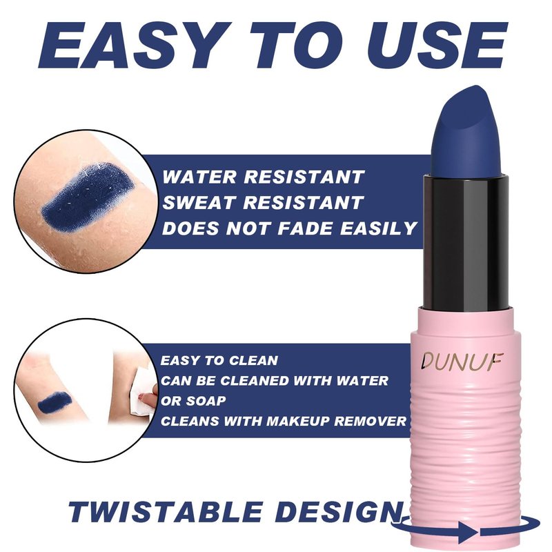 4.Wide Usages. Can be applied in baseball/ football/ softball /lacrosse and each sports games. In addition, our body paint stick is also suitable for for creating Vampire/Joker/Clown images.