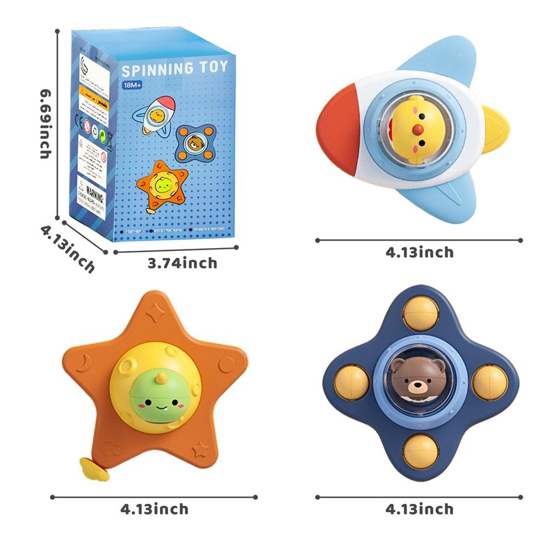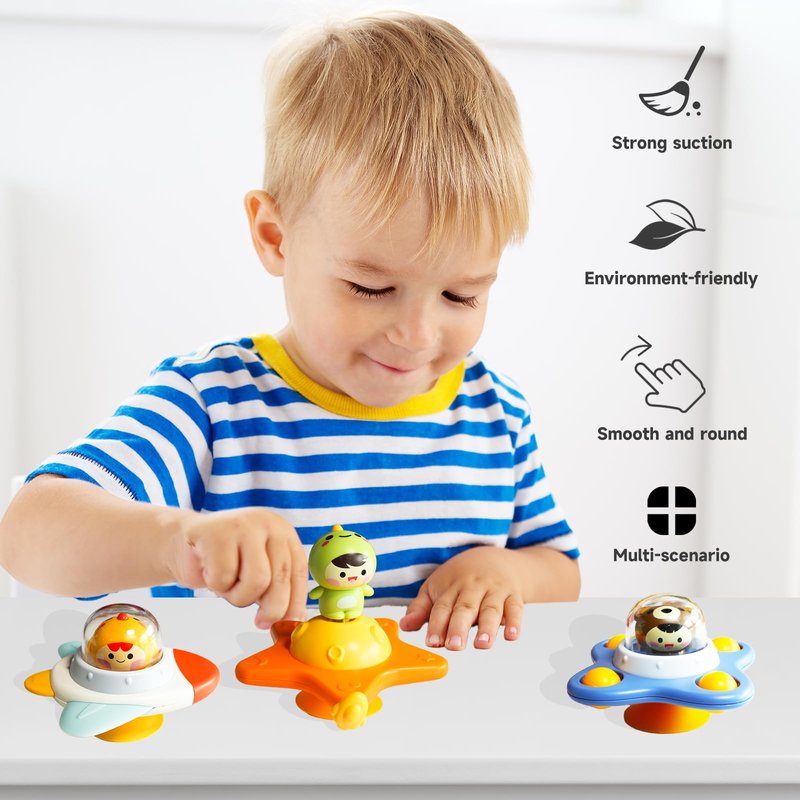 - Suction Cup Spinner Toys: These baby spinner toys with suction cups have a cartoon design inspired by space travel, allowing your child to dream about space and explore it. The cute animal-shaped styles are easy to attract your baby's attention and can help reduce children's emotional stress.