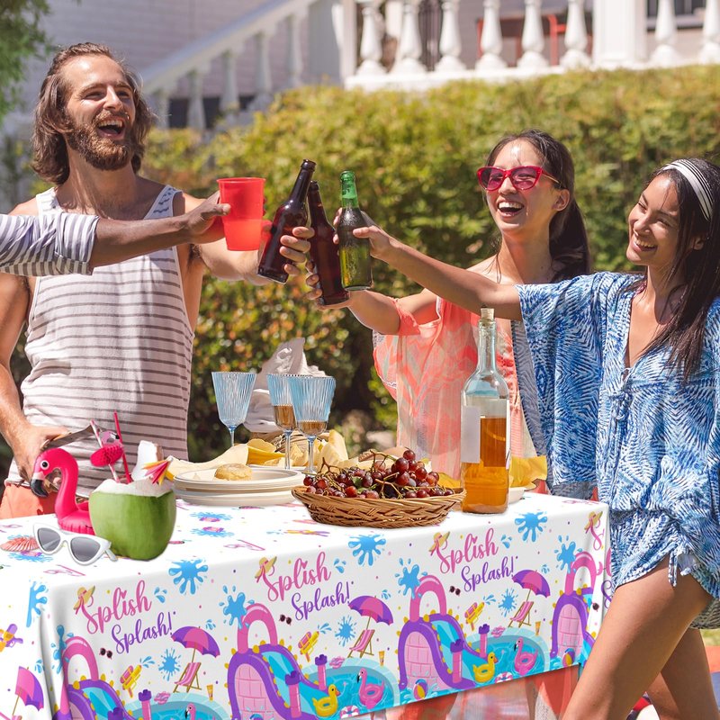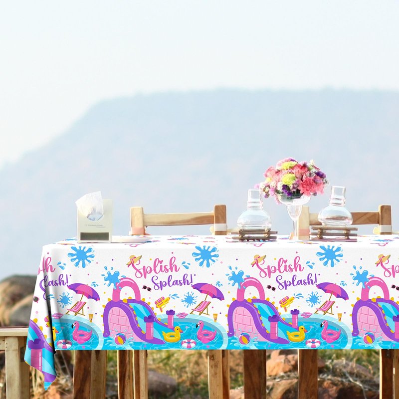 - xtralarge splish splash birthday decorations tablecloth: our pink summer birthday decorations comes with 3 pieces of summer pool party decorations tablecloth printed with “ splish splash” . the summer table decorations is shine and very eye-catching. with luxurious water slide background, splish splash pool party sparkles. adding festival atmosphere by setting these beautiful summer party table cover for the party cheers