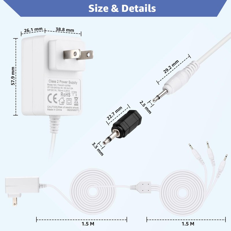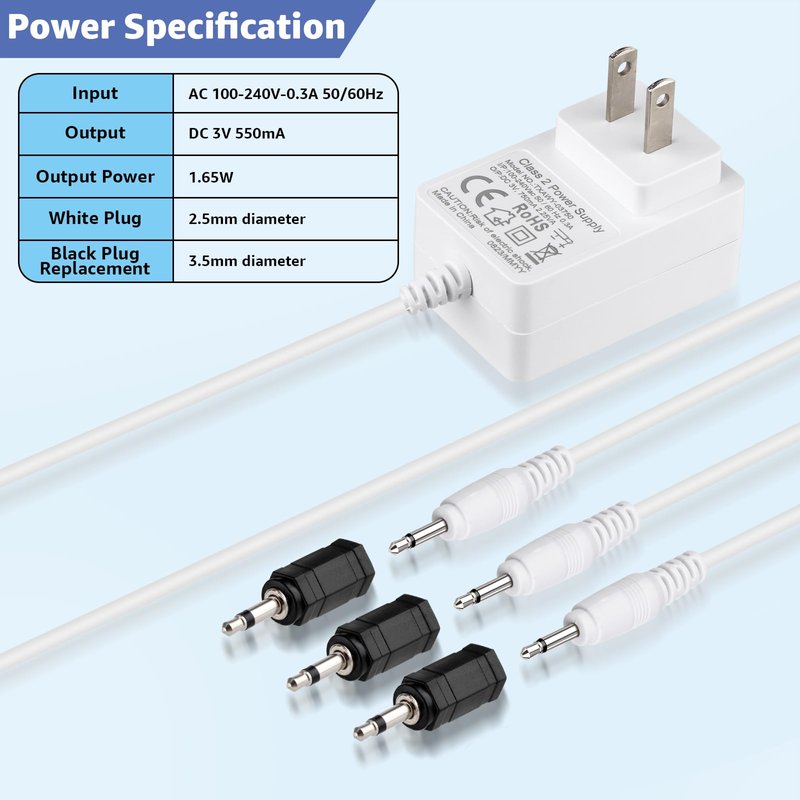 - Reliable Power Supply:Switch to 3V with ease using our AC/DC Adapter. It provides a stable power output of 550mA, making it suitable for low-power demand accessories