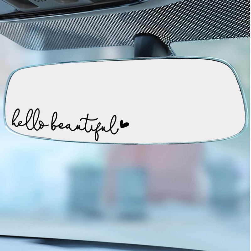 3x Hello Beautiful Rearview Mirror Decal, Vanity Mirror Stickers, Rear View Mirror Vinyl Decal, Car Accessories Gifts, Car Decal For Women, Car Window Decal, Self Affirmations Decal