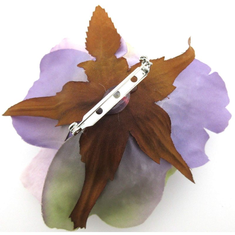 4 1/2 inch Shiny Lavender Poly Silk Rose Flower Brooch Pin with Locking Bale