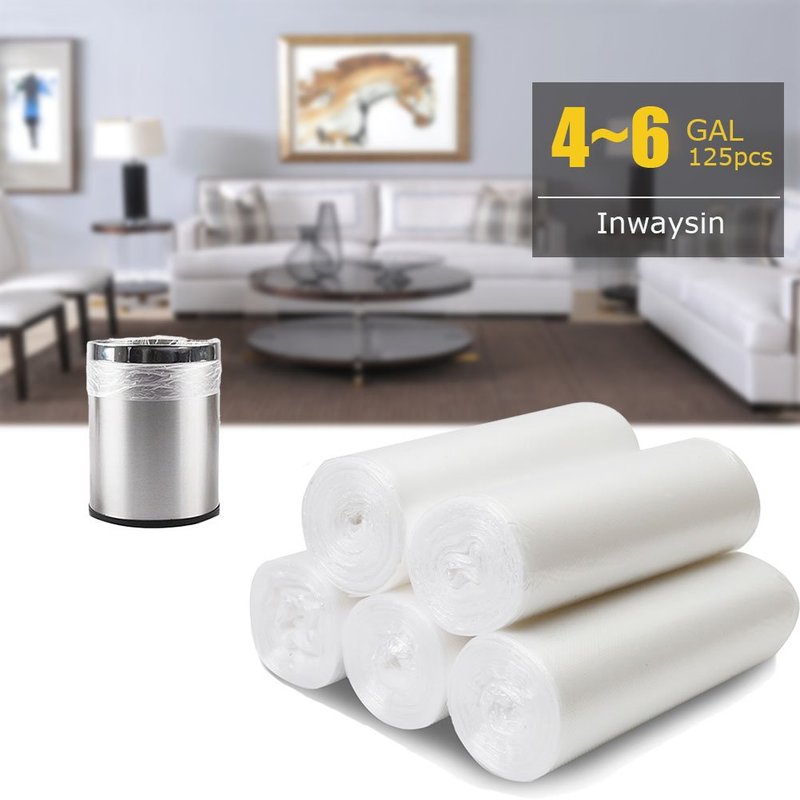 - PACKAGE INCLUDING: It comes with 5 rolls clear white trash bags, totally 125 counts.