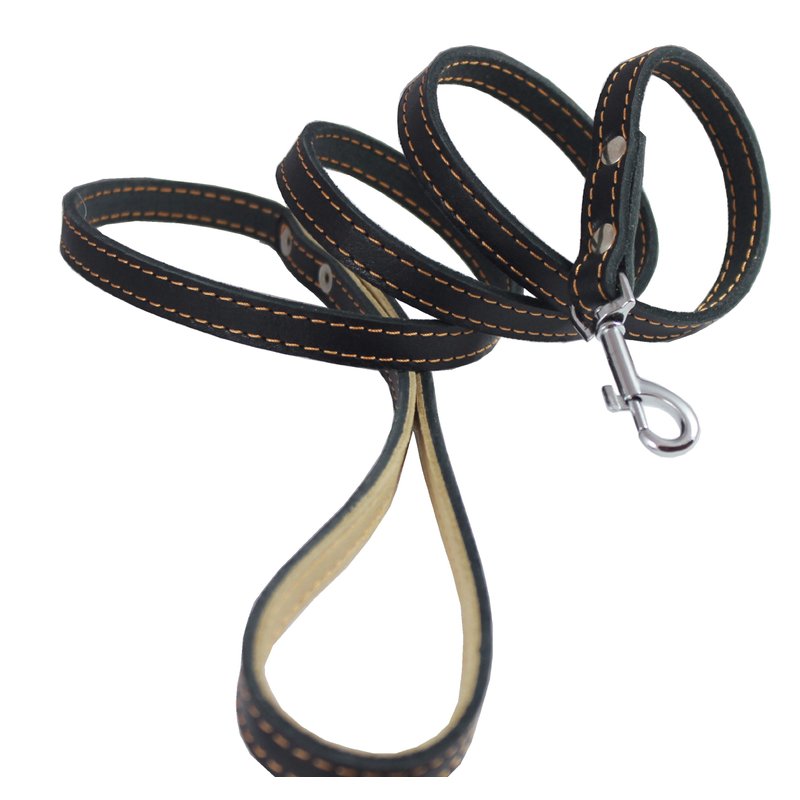 Strong leash made of genuine leather with nickel plated swivel snap. Trimmed with contrast color waxed thread, and riveted for extra strength. Most suitable for Small/Medium breeds. This Classic Leather Dog Leash is designed to make walking your dog easy!