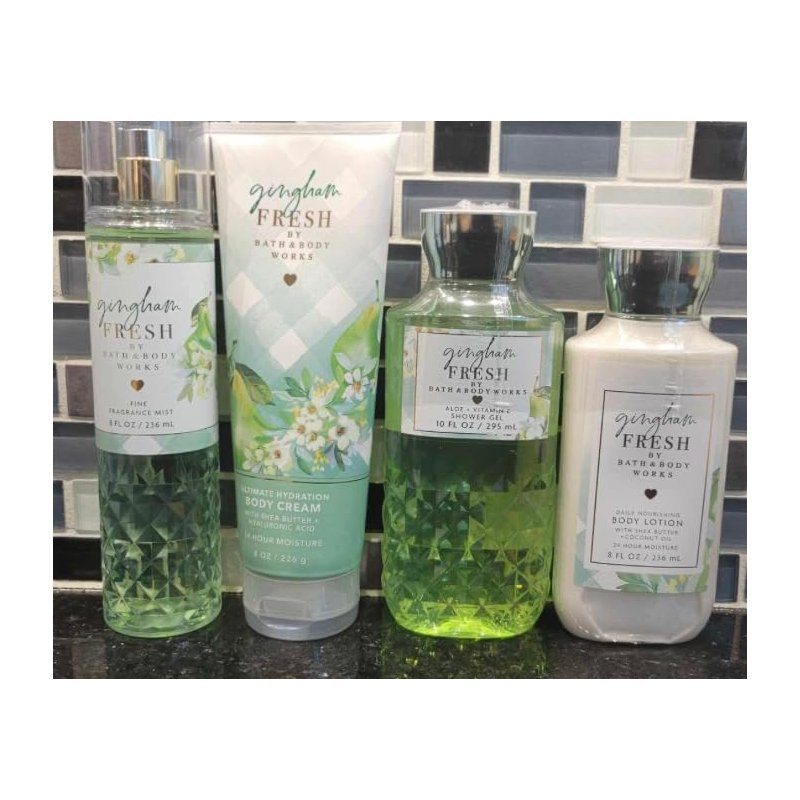 4 Gingham Fresh Pear bath body Set Shower Gel, Body Lotion, Mist and body cream
