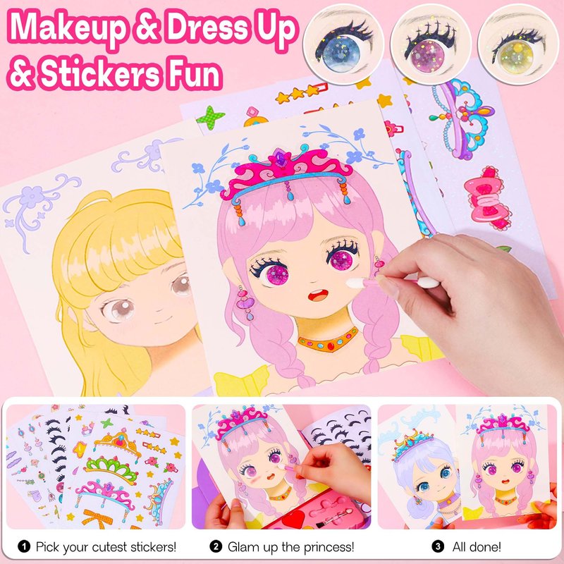 - 4 in 1 Princess Arts and Crafts for Kids: Princess dress up games offers more fun experiences, contains makeup kit, fashion design, dimond painting art kits and glowing foil stickers, providing endless creative opportunities for children